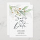 Estes belos convites de Save the Date com um spray de folhas de eucalipto e enfeites de brilho dourado são uma maneira linda e romântica de informar aos seus convidados que você definiu uma data de casamento! Esses convites são um design moderno deslumbrante, a maneira perfeita de preparar o cenário para a papelaria do seu casamento.