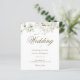 Lindo convite de casamento com flor de cerejeira branco orçamento apresentando delicada moldura de flores da primavera com os detalhes do seu casamento em letras douradas elegantes. Personalize com os detalhes do seu evento especial. O verso apresenta pétalas de flores brancas espalhadas. Criado por Thisisnotme©