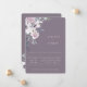 Lindo arranjo floral de jardim em aquarela com anêmonas, rosas, eucalipto e folhagens em tons na moda de violeta, rosa e verde. Cor do fundo mostrada em roxo violeta, pode ser personalizada.