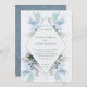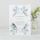 Elegante e sofisticado, este watercolor floral azul vintage é ideal para um casamento romântico de primavera. Tons de azul, azul-verde e branco se unem em um design de estilo vitoriano antigo. Um diamante central fornece amplo espaço para seus detalhes. O verso é um azul coordenado.