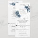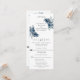Flores de índigo azul que emolduram os nomes dos cônjuges de uma forma elegante e decorativa.