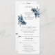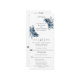 Flores de índigo azul que emolduram os nomes dos cônjuges de uma forma elegante e decorativa.