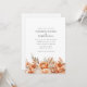 Defina o tom do seu dia especial com este elegante Convite de Casamento de Flores Secas Boho Coral e Pêssego. Com delicados arranjos florais em aquarela em tons quentes de coral e pêssego, este convite incorpora uma estética boêmia romântica e moderna. Os detalhes suaves e artísticos das flores secas criam um visual atemporal e moderno, perfeito para casamentos rústicos, ao ar livre ou inspirados no vintage. O texto personalizável é estilizado em uma fonte boho elegante, permitindo que você personalize cada detalhe para combinar com o tema do seu casamento.