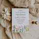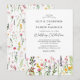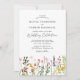 Convites de casamento com flores prensadas vintage apresentando um fundo branco minimalista, um design de flores silvestres em aquarela rústica e um modelo de casamento elegante que é fácil de personalizar.