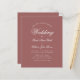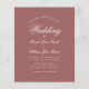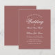 Um convite de casamento simples e minimalista dentro do orçamento. Tem apenas texto branco sobre fundo canela rosa. A palavra Casamento e os nomes são escritos em uma fonte caligráfica elegante.