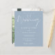 Este elegante convite de casamento azul poeira orçamento pode ser personalizado com suas informações em tipografia sofisticada com sua foto especial no verso. Criado por Thisisnotme©