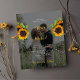 Convite de casamento econômico com sobreposição de foto na moda com lindos buquês de girassóis em um fundo transparente escuro. Ideal para o seu casamento elegante ao ar livre no verão ou outono, jardim, celeiro de fazenda ou tema de quintal. Personalize com as 2 fotos de noivado do casal, nomes em escrita dourada falsa e detalhes do casamento! POR FAVOR, LEIA ISSO ANTES DE COMPRAR! Este é um cartão econômico impresso em uma folha de papel (cada folha tem um cartão). Para a melhor relação preço-qualidade, nosso conselho é escolher o tipo de papel Semi-Gloss (é grosso o suficiente para ser usado para papelaria). Se você precisar de envelopes, escolha a OPÇÃO DE ENVELOPE. Verifique novamente todas as informações e ortografia do seu texto porque você receberá exatamente o que vê - ninguém mais verificará nada antes da impressão. Este cartão é projetado para o tamanho 4,5 "x 5,6". No caso de você escolher outro tamanho do cartão e o texto ultrapassar a página, tudo precisará ser corrigido antes de adicionar o produto ao carrinho. Por favor, peça ajuda ao Serviço de Design ao Vivo.