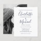 Convite de casamento azul marinho e branco econômico com sua foto, nomes com estilo de assinatura, este convite de casamento azul marinho e branco pode ser personalizado com suas informações em letras elegantes. Projetado por Thisisnotme