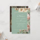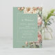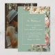 Um convite de casamento romântico em sage verde com flores de peônia exuberantes, combinado com a foto do seu noivado. Este design botânico combina peônias rosa suave com uma estética de jardim quente, criando um anúncio profundamente pessoal e elegante.