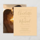 Com sua foto, nomes em estilo de assinatura, este elegante convite de casamento com champanhe orçamentário e dourado pode ser personalizado com suas informações em letras elegantes. Criado por Thisisnotme©