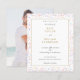 Os detalhes do convite para a celebração do seu casamento especial dentro do orçamento estão definidos em uma tipografia moderna e elegante, dentro de um painel com moldura dourada sobre um fundo colorido de confetes de arco-íris. O verso apresenta sua própria foto especial ou pode ser deixado em branco ou ter uma cor de fundo adicionada. Criado por Thisisnotme©