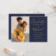 Com a sua foto especial e nomes em estilo de assinatura, este convite de casamento elegante em azul marinho e dourado pode ser personalizado com as informações do seu dia especial no verso, incluindo sua confirmação de presença, acomodação e detalhes adicionais. Criado por Thisisnotme©