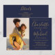 Convite de Casamento com Foto e Letra em Azul Mari