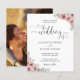 Este elegante convite de casamento preto e branco econômico com flores rosa poeiradas pode ser personalizado com os detalhes da sua celebração em tipografia sofisticada e sua foto especial no verso. Projetado por Thisisnotme©