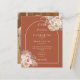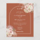 Belas aquarelas florais de grama pampas com um arco elegante emoldurando os detalhes da celebração do seu casamento especial e iniciais do monograma em tipografia estilosa sobre um fundo de terracota e sua foto especial no verso deste convite de casamento econômico e elegante. Criado por Thisisnotme©