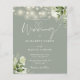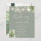 Este elegante convite de casamento verde sage econômico, apresentando lindas luzes de corda e folhagens florais, pode ser personalizado com suas informações em tipografia chic com sua foto especial no verso. Projetado por Thisisnotme©