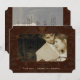 Belos Tons de Terra Quentes e Sofisticados Convite de Casamento com Foto em Marrom Chocolate Damask para seu Cartão de Casamento