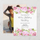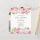 Um convite de casamento econômico e elegante com lindas guirlandas de rosas rosa emoldurando os detalhes personalizados do seu casamento em texto elegante e sua foto especial no verso. Criado por Thisisnotme©