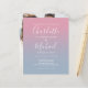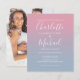 Com a sua foto, nomes em estilo de assinatura, este convite de casamento elegante e econômico em tom rosa e azul poeira ombre pode ser personalizado com suas informações em letras sofisticadas. Concebido por Thisisnotme©