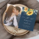 Um convite de casamento com foto floral rústica de outono com buquê de girassol e eucalipto aquarelado. Clique no botão de editar para personalizar este design.