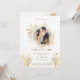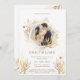 Este convite de casamento apresenta um design de gradiente dourado e uma foto, tornando-o uma escolha luxuosa e elegante para o seu grande dia. O convite faz parte de um conjunto completo de papelaria de casamento, mostrando a arte fina dos detalhes do seu casamento. O design do convite serve como inspiração para seus convidados, definindo o tom para o seu evento especial.