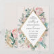 Procurando um convite de casamento com grama das pampas? Este elegante convite de casamento com protea eucalipto e grama das pampas apresenta uma arte em aquarela requintada de eucalipto, grama das pampas, proteas e folhagens exuberantes, emoldurada por um design geométrico de diamantes dourados (efeito digital de ouro falso). A combinação de elementos botânicos suaves e acentos metálicos modernos cria um equilíbrio perfeito entre charme natural e elegância contemporânea - ideal para casamentos boho, rústicos ou modernos.
