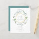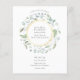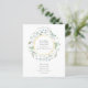 Um convite de casamento econômico e elegante com uma grinalda de louro decorativa e borda dourada contendo os nomes do casal feliz. Abaixo, os detalhes do casamento são apresentados em texto clássico e elegante. O verso apresenta os nomes do casal casado dentro de uma grinalda floral e dourada combinando. Criado por Thisisnotme©