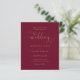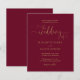 Este convite de casamento econômico e elegante pode ser personalizado com os detalhes da sua celebração em tipografia dourada chique sobre um fundo borgonha. Criado por Thisisnotme©