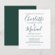 Com nomes elegantes em estilo de assinatura, este convite de casamento moderno verde esmeralda pode ser personalizado com suas informações em letras elegantes. Criado por Thisisnotme©