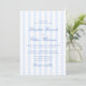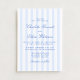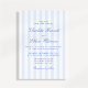 Este convite de casamento apresenta um padrão de listras verticais suaves em azul e branco, combinado com uma tipografia elegante em letra cursiva. O design clássico de listras dá ao convite uma aparência atemporal e refinada, enquanto a paleta de cores azul claro o mantém fresco e moderno. A combinação de listras limpas e letras cursivas fluidas cria um estilo equilibrado que se sente ao mesmo tempo tradicional e moderno.