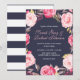 Convite de casamento moderno e chique com rosas em aquarela e padrão de listras. Perfeito para o seu casamento floral na primavera. Decorado com belas flores e folhas. Personalize o texto para qualquer ocasião especial, como chá de noiva, festa de noivado, chá de bebê, festa de aniversário ou aniversário de casamento. A cor do fundo pode ser personalizada para combinar com o tema de cores.