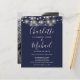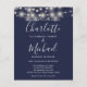 Com belas luzes de corda e nomes em estilo característico. Este convite de casamento azul navy econômico e elegante pode ser personalizado com os detalhes do seu casamento em letras elegantes e foto especial no verso. Criado por Thisisnotme©