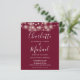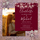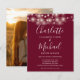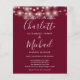 Com belas luzes de corda e nomes de estilo característico. Este convite de casamento de borgonha econômico e elegante pode ser personalizado com os detalhes do seu casamento em letras elegantes e foto especial no verso. Criado por Thisisnotme©