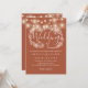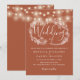 Um convite de casamento de terracota com lindas luzes de corda e uma delicada guirlanda floral rústica desenhada à mão com folhagens botânicas e tipografia de letra estilosa. Personalize com as informações do seu dia especial de casamento. Criado por Thisisnotme