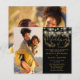 Com lindas luzes de corda e uma guirlanda floral desenhada à mão, este convite de casamento preto e dourado econômico pode ser personalizado com suas fotos especiais e informações em letras elegantes. Criado por Thisisnotme©