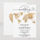 Planejando o casamento em um destino romântico? Convide seus convidados com este lindo convite com um mapa mundial dourado e seu destino personalizado marcado com um coração móvel.