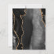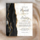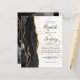 A borda esquerda deste convite de casamento moderno e elegante apresenta uma borda de ágata em aquarela preta aparada com brilho dourado falso. O texto personalizável combina a escrita à mão preta com fontes copperplate preta e itálico em um fundo de mármore branco e dourado. O verso apresenta um design de ágata preto e dourado correspondente.