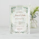 Um convite de casamento moderno com um design elegante e limpo. Apresenta padrões florais delicados e uma moldura dourada simples. Este design é perfeito para o seu dia especial e é fácil de personalizar.