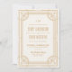 Este convite de casamento moderno apresenta uma moldura ousada inspirada no art déco.