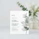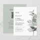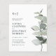 Convite de casamento com monograma, código QR de eucalipto econômico e sage branca.. Nosso convite de casamento botânico simples e acessível apresenta um elegante ramo de eucalipto em aquarela em tons de sage e verde poeirento que destaca o monograma e o texto do convite ao lado. A parte de trás do convite, na cor sage clara, também exibe o código QR do seu site de casamento, bem como o URL do site, permitindo que os convidados respondam facilmente online e visualizem todos os detalhes normalmente enviados em um pacote de casamento. O código QR atualizado neste convite permite gerar seu próprio código QR do site de casamento simplesmente digitando o URL do seu site no modelo de personalização onde indicado. Todo o texto de exemplo pode ser facilmente revisado com suas próprias informações no modelo de personalização.