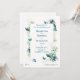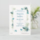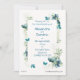 Este convite de casamento moderno tem motivos florais e de borboleta em tons de verde/azul.