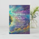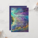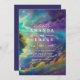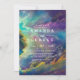 Belo convite de casamento com um fabuloso céu brilhante no fundo numa combinação de cores amarela, azul e roxa.