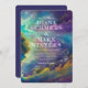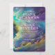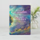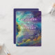 Belo convite de casamento com um céu brilhante fabuloso ao fundo em uma combinação de cores amarelo, azul e roxo.