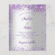 Um fundo moderno com aparência de prata falsa. Decorado com purpurina falsa roxa escura e violeta, brilhos. Personalize e adicione seus nomes e detalhes.