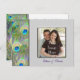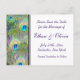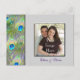 Cartão postal de convite de casamento com pena de pavão e moldura de prata polida.
