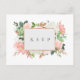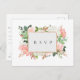 Elegante moldura dourada com flores em aquarela e folhagens em tons bonitos de verde, branco, dourado rosa, rosa e rosa pétala, convite de casamento com pedido de música, cartão postal. Personalize o texto, customize o estilo da fonte, cor e tamanho.