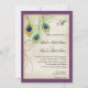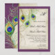 Este é um convite contemporâneo e sofisticado. Com penas de pavão estilizadas e pintadas à mão com aquarela, sobre um fundo de renda e pergaminho pintados à mão com a cor da borda de fundo de sua escolha, mostrado aqui em roxo pavão. VOCÊ TAMBÉM PODERÁ GOSTAR DE: