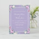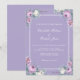 Este convite de casamento roxo-lavanda apresenta peônias, lavanda, formas geométricas e tipografia em água branca e roxa. Ideal para um casamento ao ar livre. Encontre itens correspondentes na Coleção de Casamento Floral Roxo Lavanda.