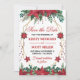 Desenho de Natal floral de poinsétia vermelha aquarela com moldura dourada e fundo branco