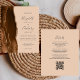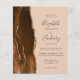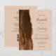 A borda esquerda deste convite de casamento moderno e elegante apresenta uma borda de ágata marrom moca com acabamento em brilho dourado falso. O texto personalizável combina fontes de caligrafia, copperplate e itálico em cinza carvão sobre um fundo bege. Adicione detalhes adicionais no verso, juntamente com um código QR para ajudar seus convidados a visitar seu site de casamento.